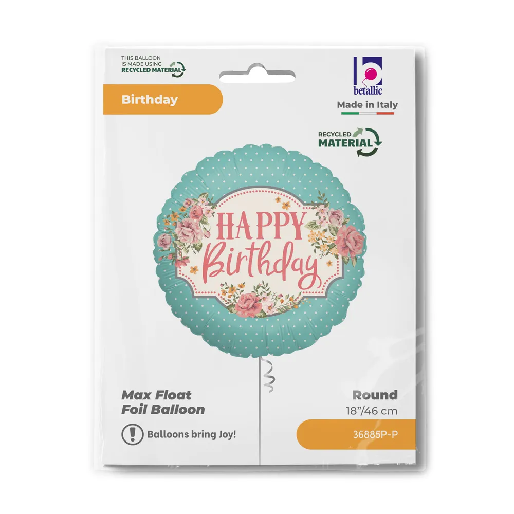 Fóliový balónek kulatý s nápisem Happy Birthday a motivem růží je elegantní dekorací pro narozeninové oslavy, párty i překvapení pro oslavence. Lesklý povrch a decentní hvězdičkový design dodají výzdobě slavnostní a moderní vzhled.