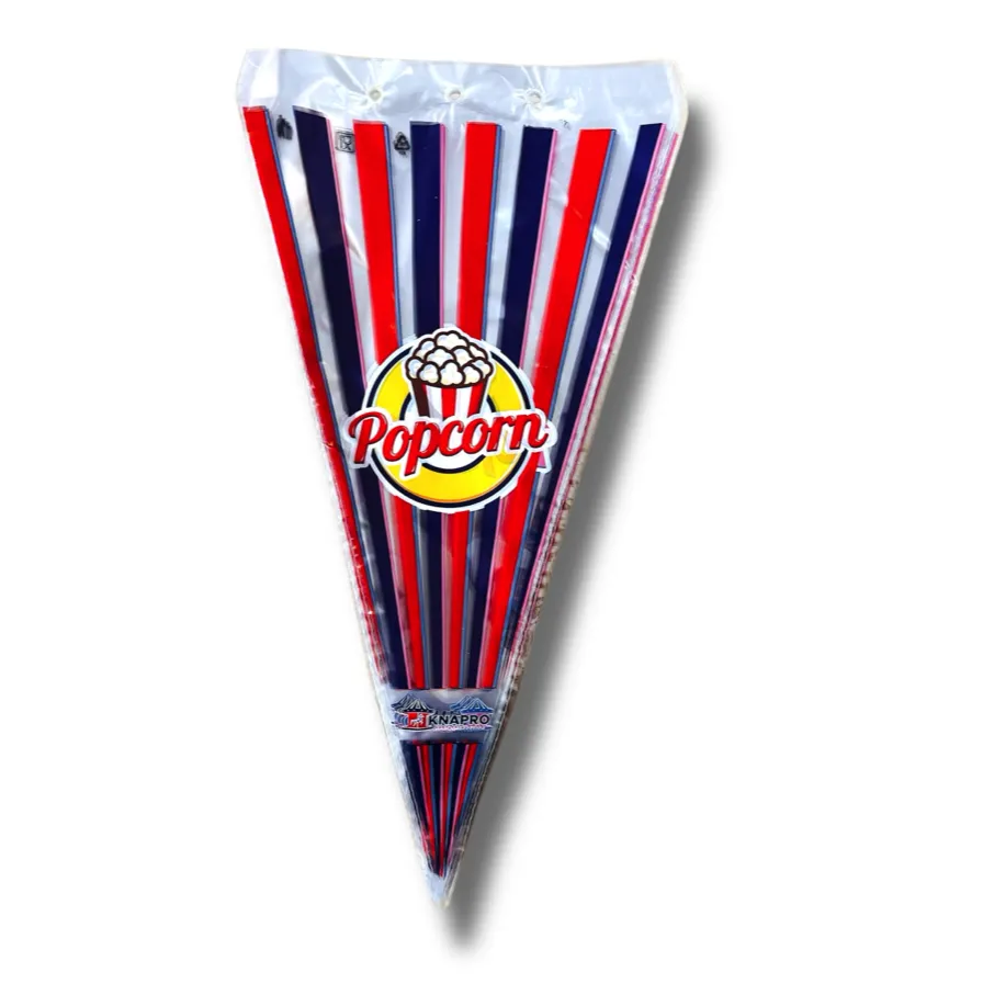 Igelitový obal – kornout KNAPRO je praktický a odolný obal pro servírování popcornu nebo sladkostí. Kornouty jsou vyrobeny z pevného igelitového materiálu, který chrání obsah před vysypáním a udržuje jeho čerstvost, a zároveň umožňuje průhlednou prezentaci.