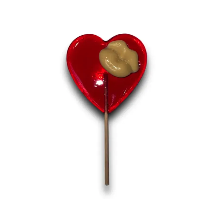 • Originální lízátko ve tvaru srdce s nápisem Kiss