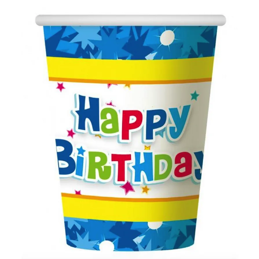Papírový kelímek Happy Birthday modrý - 18 cm / 6 ks