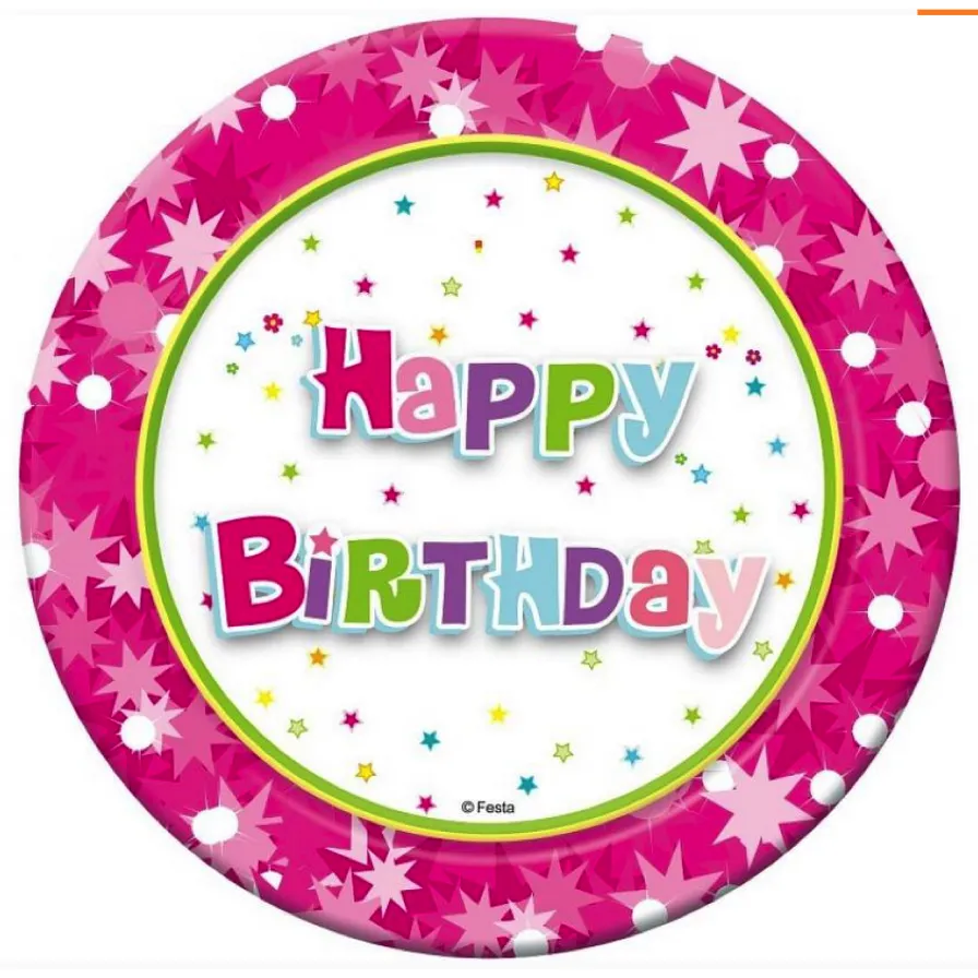 Papírový talířek Happy Birthday růžový - 18 cm / 6 ks